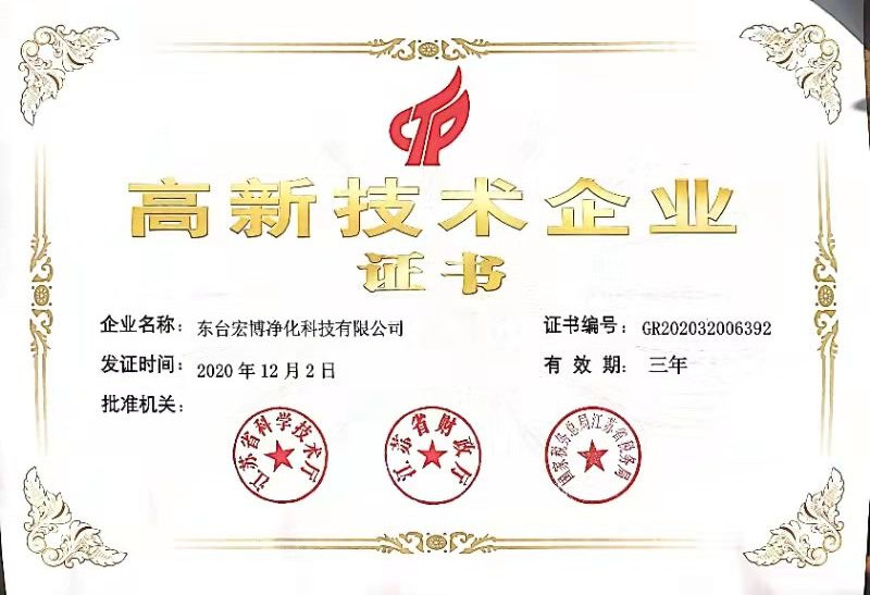 2020年,宏博企業(yè)江蘇宏博氣體裝備科技有限公司,生產(chǎn)基地-東臺宏博凈化科技有限公司同時獲評高新技術(shù)企業(yè),并于近日收到由江蘇省科學(xué)技術(shù)廳、江蘇省財政廳、國家稅務(wù)總局江蘇省稅務(wù)局聯(lián)合頒發(fā)的《高新技術(shù)企業(yè)證書》。